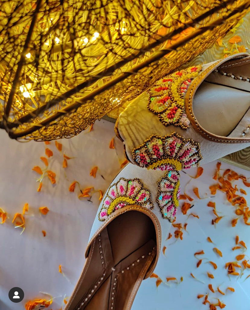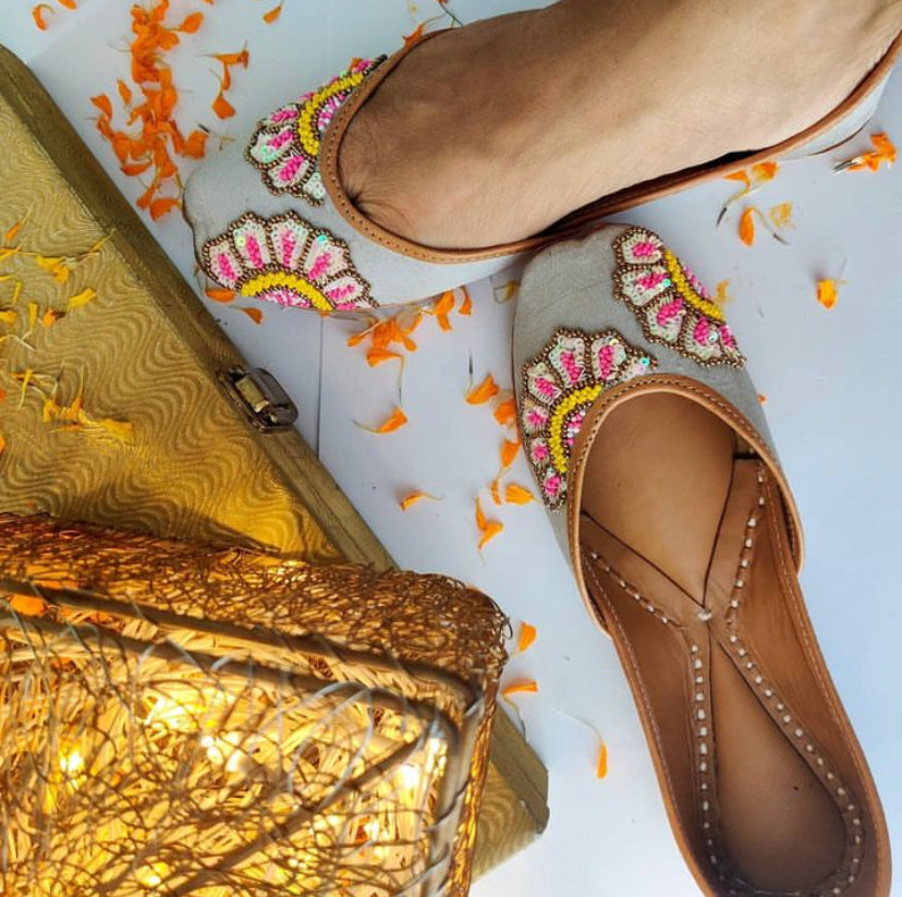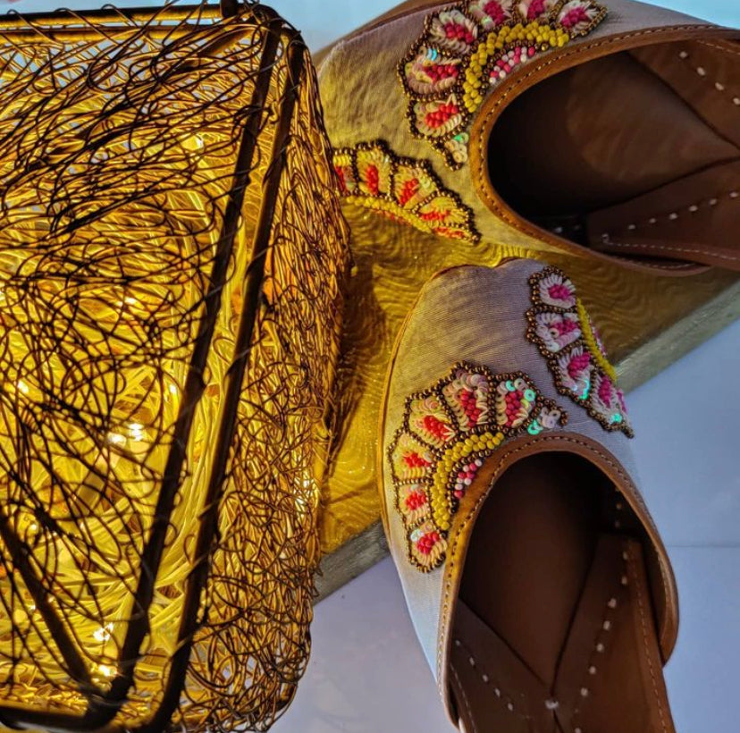 Featuring a floral design set on a pastel base. The bespoken design features, beads, sequence, and multicolored work dazzling on top!✨