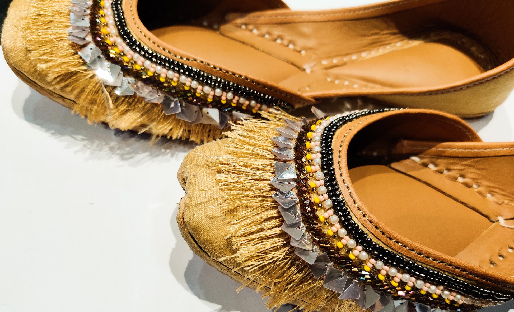 Store your shoes in the dust bag provided to you with your box or in a muslin cloth, keep them dry and away from moisture. If at all exposed to moisture, please dry them out for a few hours before putting them back in.
